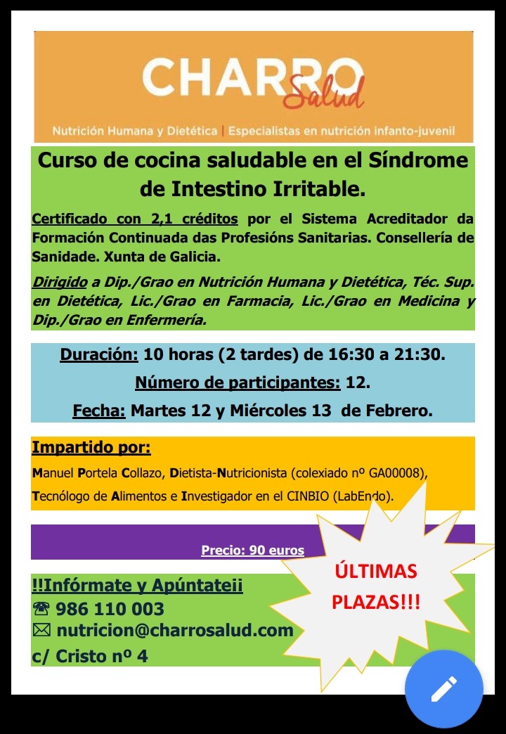 Los próximos Martes 12 y Miéroles 13 de Febrero, realizaremos un curso acreditado por el Sistema Acreditador da Formación Continuada das Profesións Sanitarias da Consellería de Sanidade da Xunta de Galicia.
